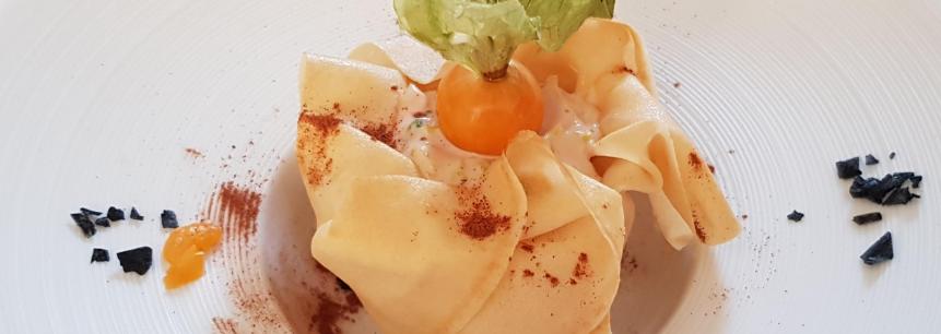 Carpacio de langostinos tigre,flora del mar y pistachos